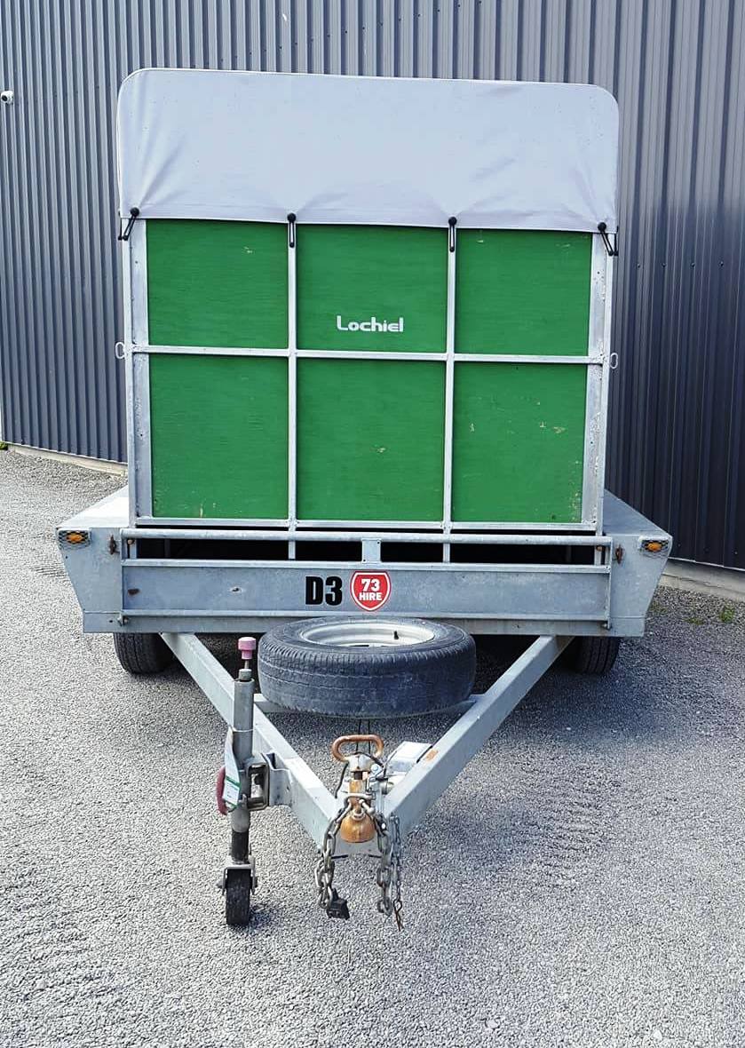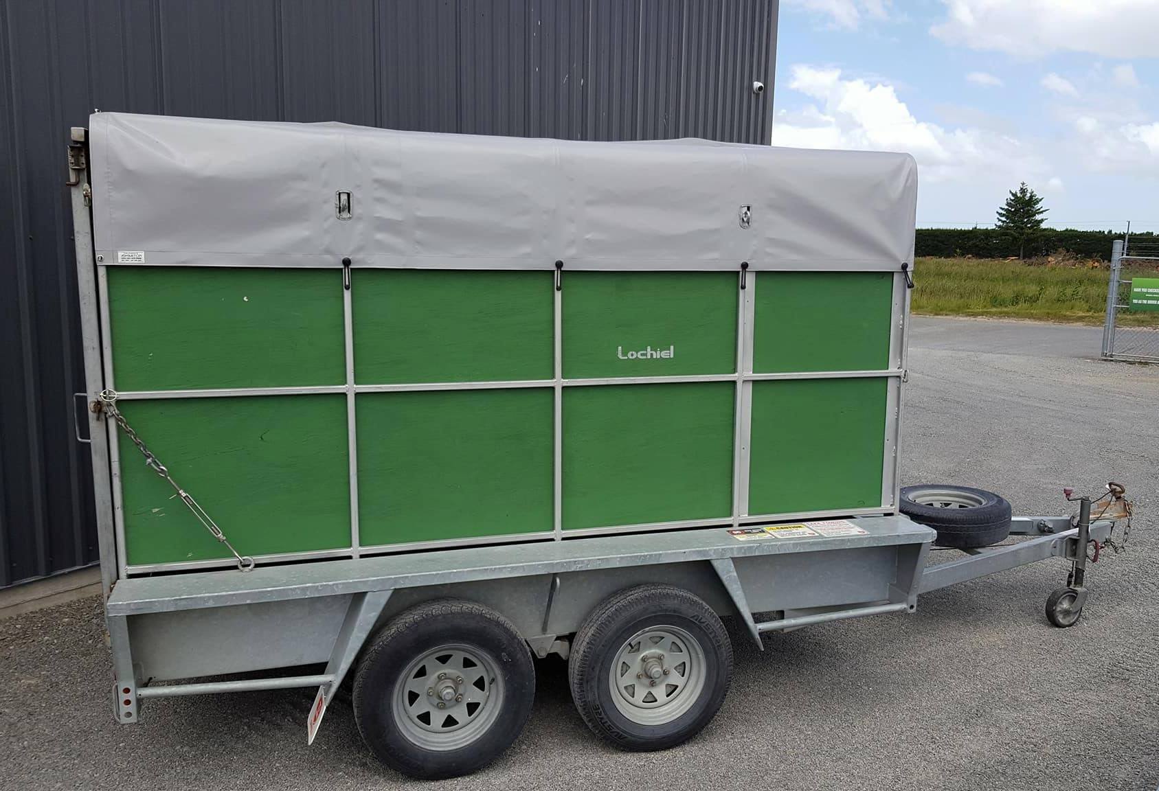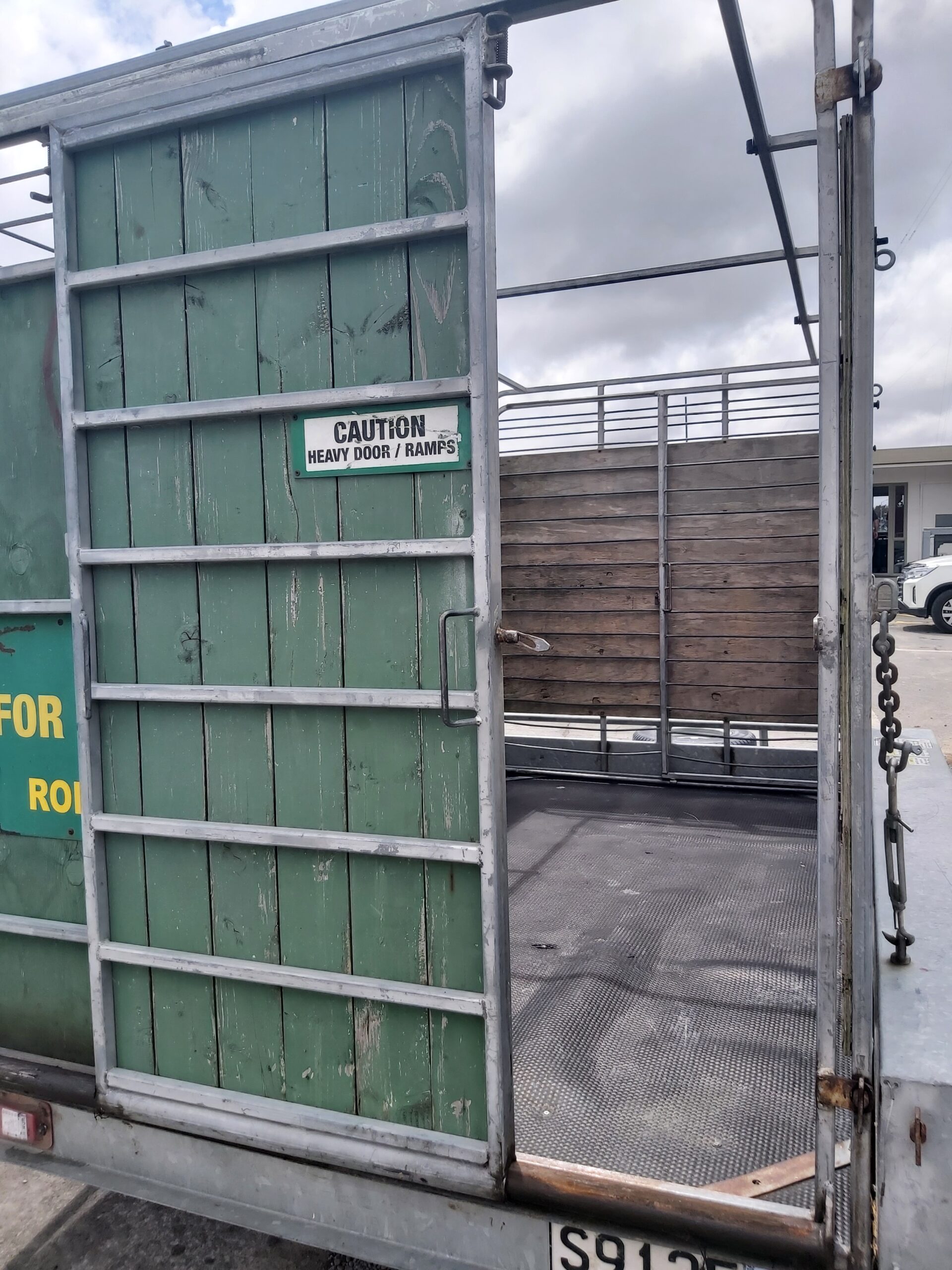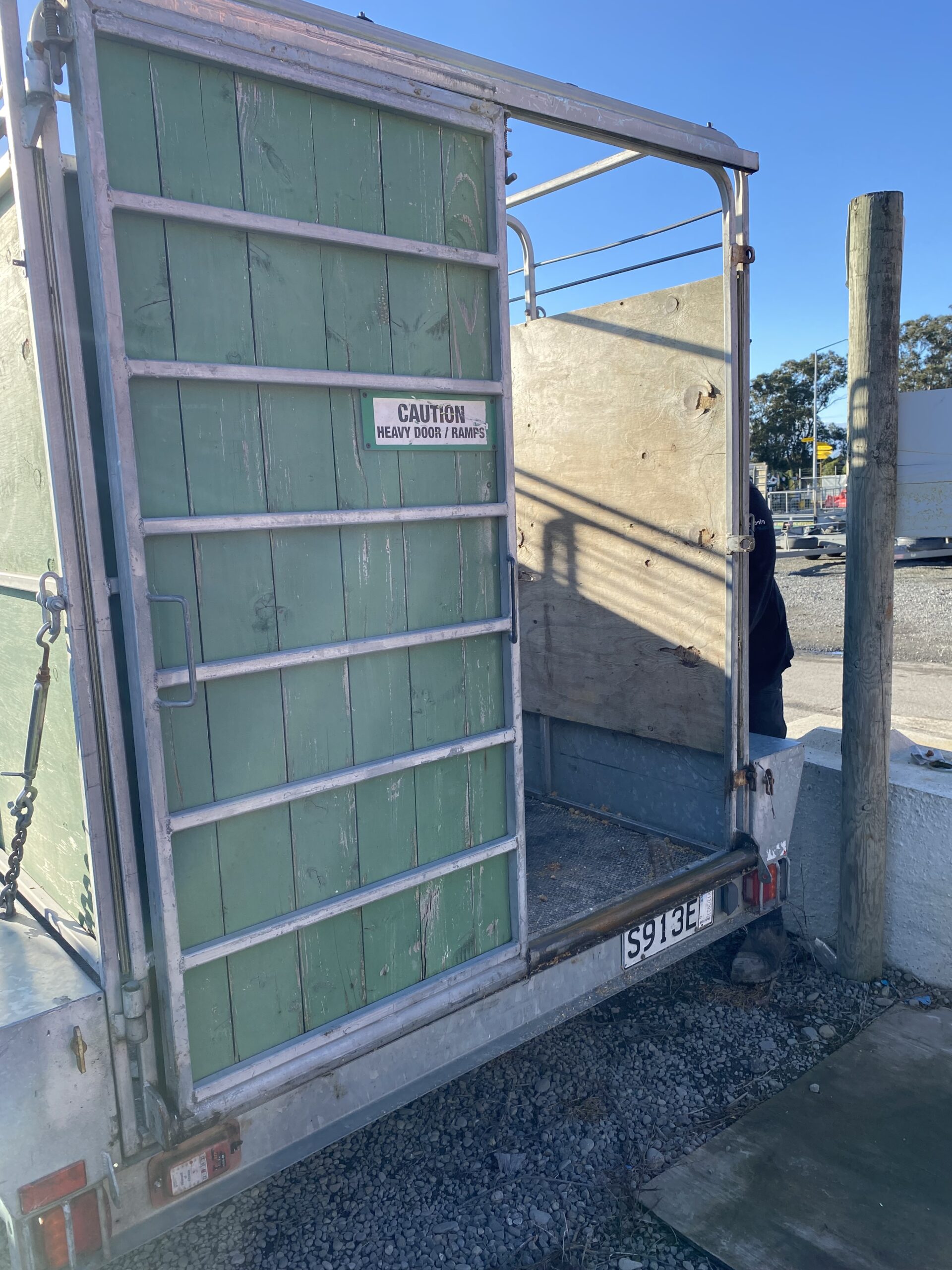 Stock trailer with Cattle Crate. Divider in the middle and the back door also doubles as a ramp. It is rated to carry up to 2.5ton including tare weight unbraked